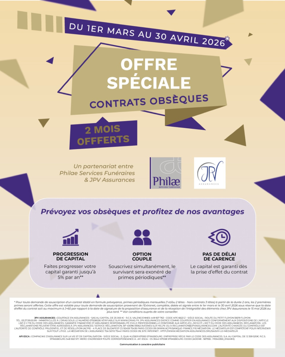 Et si on vous disait que chez PF Lopeso Philae Serris vous pouviez tout prévoir à l’avance, en toute sérénité en souscrivant un contrat obsèques avec JPV assurances ?