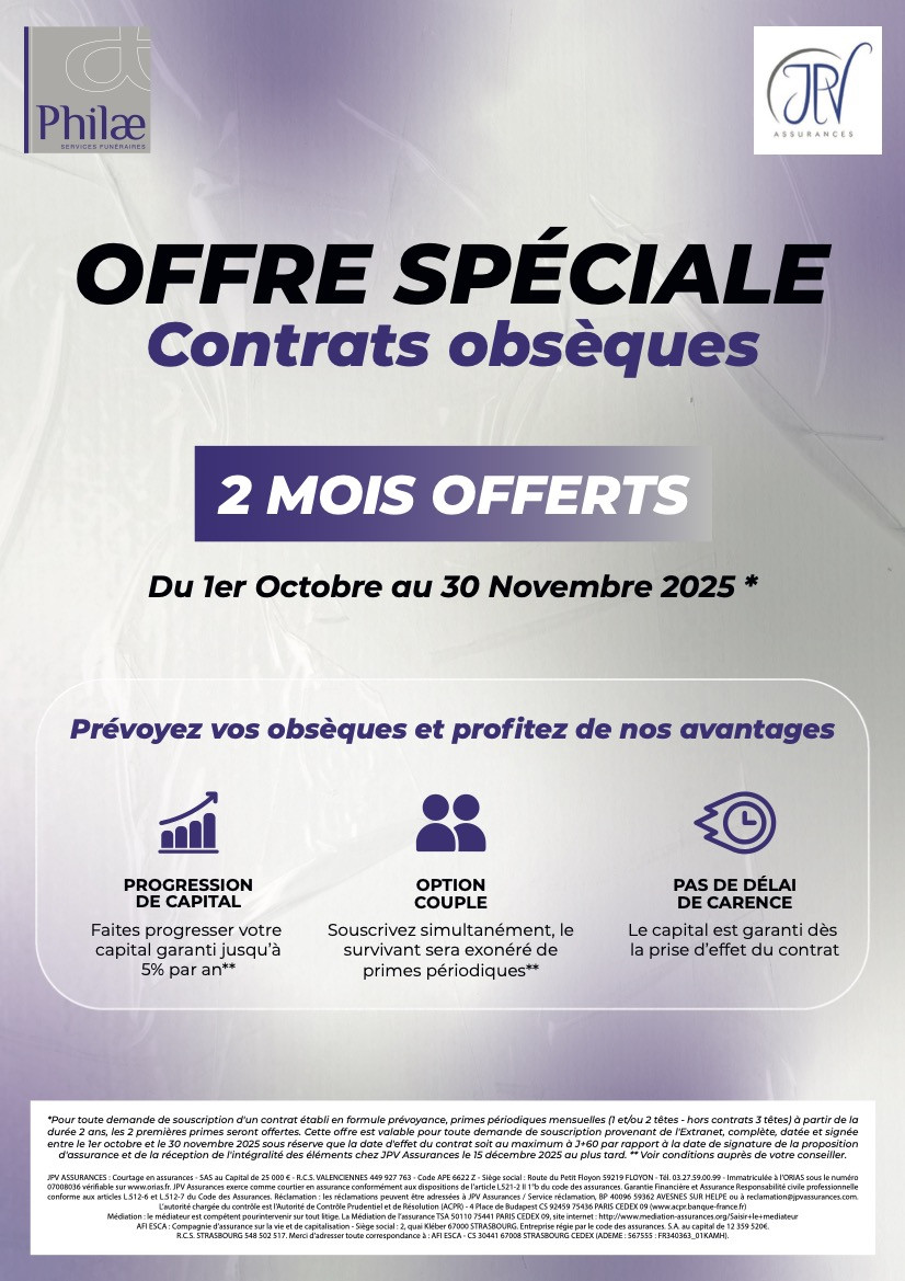 Contrats prévoyance obsèques 2 MOIS OFFERTS